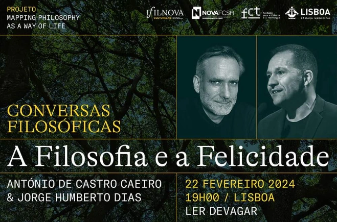 Em parceria com a Câmara Municipal de Lisboa, o projeto “Mapping Philosophy as a Way of Life” (Universidade Nova de Lisboa) convida todos os interessados a participarem nesta primeira Conversa Filosófica em torno da Felicidade, que contará com a presença dos Professores António de Castro Caeiro e Jorge Humberto Dias, e a moderação de Marta Faustino. O evento é de entrada livre e gratuita. Todos serão bem-vindos!